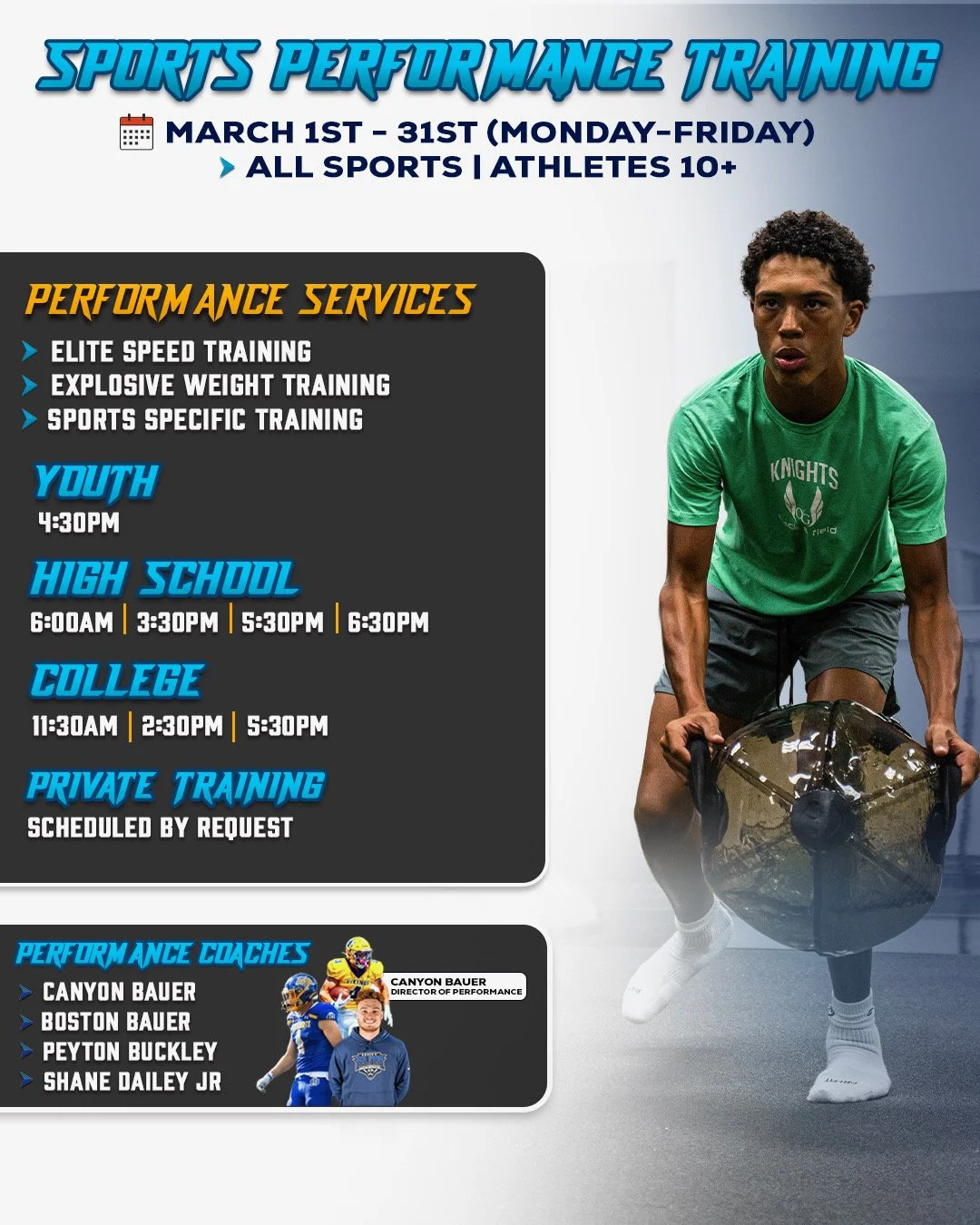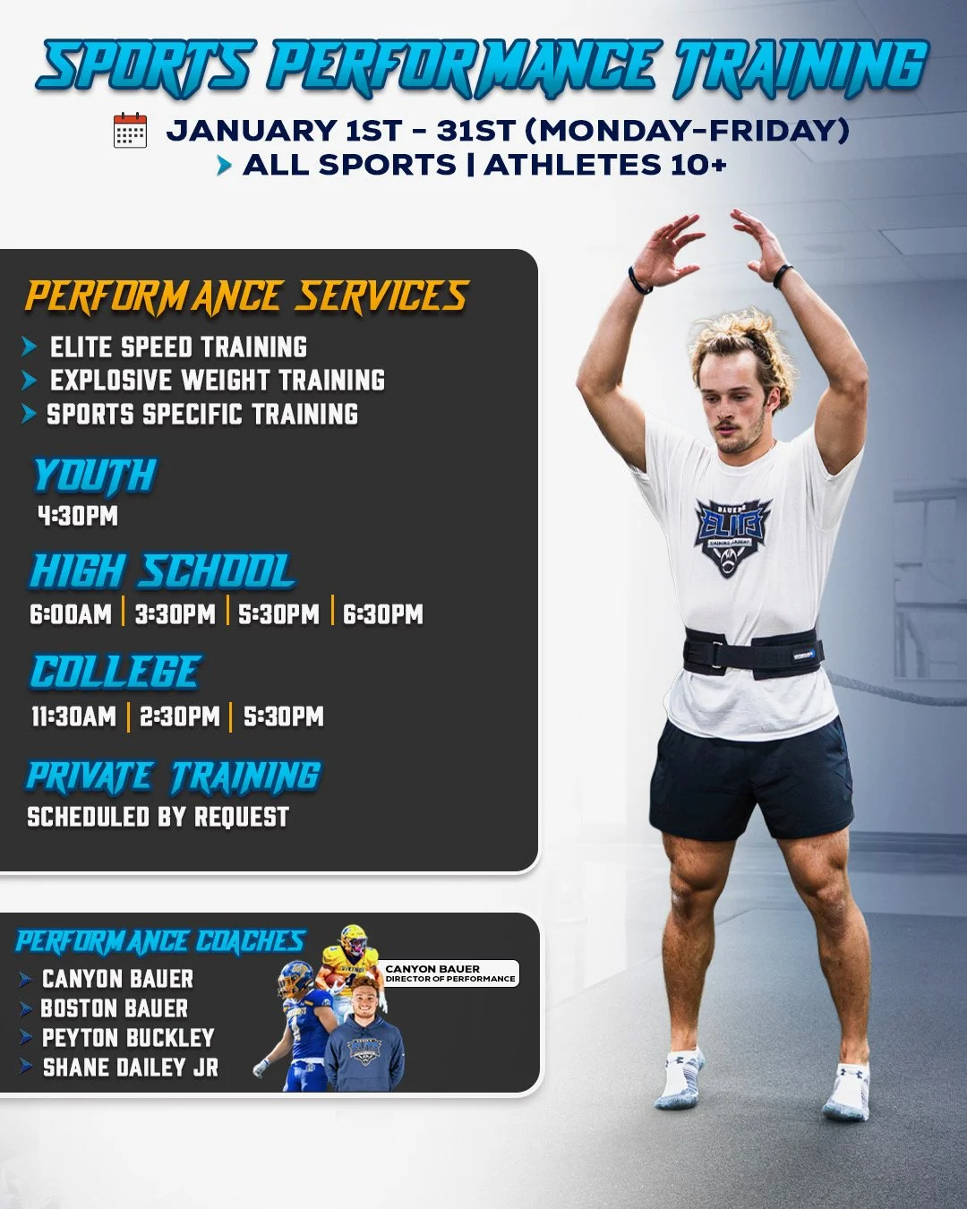 Coach Canyon Bauer – Wide Receivers Coach | Sharks 7v7 Head Coach | Recruiting Combine Director | NFL Pro Day Prep | Director of Sports Performance | Youth 7v7 Passing League Director | Co-Founder – Bauer’s Elite Training Academy